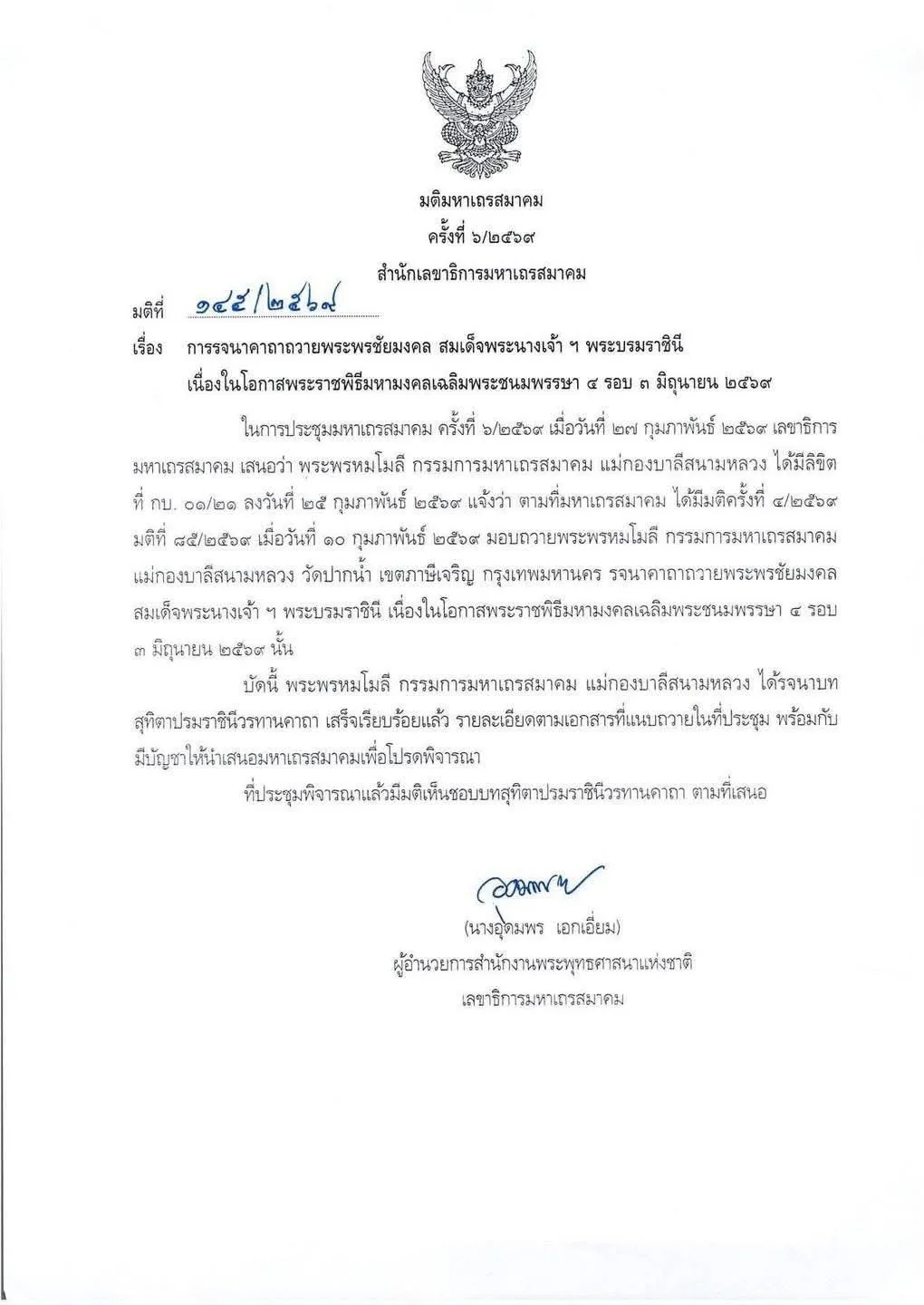 มติมหาเถรสมาคม 6/2569